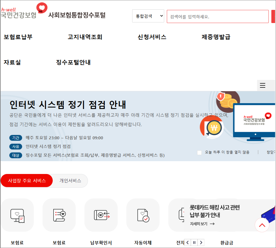 사회보험 통합징수포털 이용방법